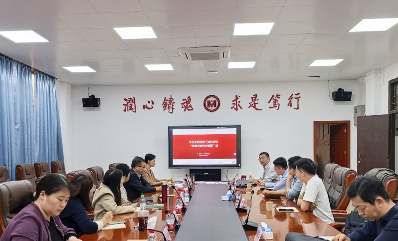 为进一步提升学院青年教师的教学与科研能力,增进省内兄弟院校的交流与合作,2025年10月24日下午,我院在201会议室成功举办第4期青年学术工作坊沙龙活动。本次活动邀请暨南大学马克思主义学院秦云周副教授为主讲人,作题为《大历史观视域下如何讲好“中国近现代史纲要”课》的专题报告。广东外语外贸大学周龙副教授、广东技术师范大学陈明亮副教授、华南师范大学鄢海亮博士、我院蒋正峰教授、院长助理赵志宇副教授、中国近现代史纲要教研室主任赵艳芝副教授等专家学者参与讨论。学术沙龙由李蒙蒙博士主持。