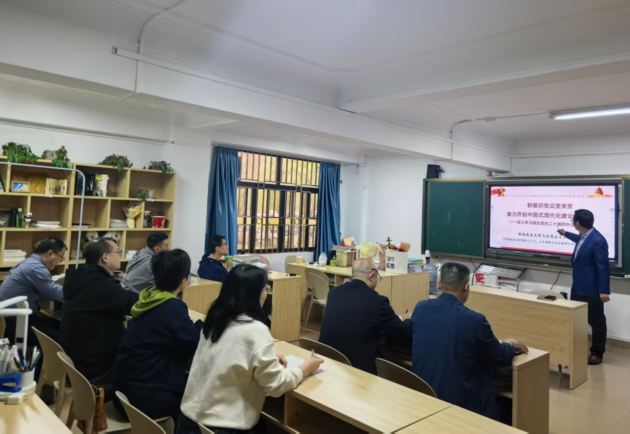 近日,华南农业大学马克思主义学院党委副书记李敏以《积极识变应变求变 奋力开创中国式现代化建设新局面》为题,为国家安全与国防教育教研室教工党支部讲授专题党课,带领全体党员深入学习领会党的二十届四中全会精神。
