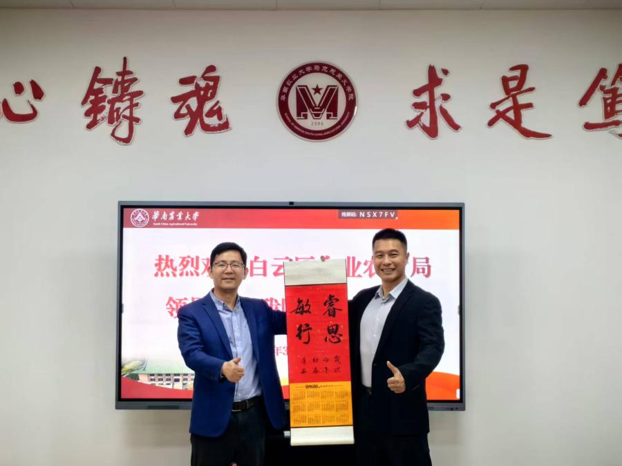李敏全面介绍了学院的学科建设、人才培养以及社会服务等方面的发展情况,重点展示了学院在乡村振兴研究、社会宣讲培训方面的成效。郑大睿简要通报了白云区农业农村局近期重点工作,双方聚焦“十五五”规划,围绕高水平农民培育、农村现代化建设等核心领域,深入探讨了校地合作的切入点与发力点。郑大睿诚挚欢迎学院教师深入该局定点扶贫一线开展深度调研,总结基层实践经验、形成高质量研究成果,为区域农业农村发展提供智力支持。