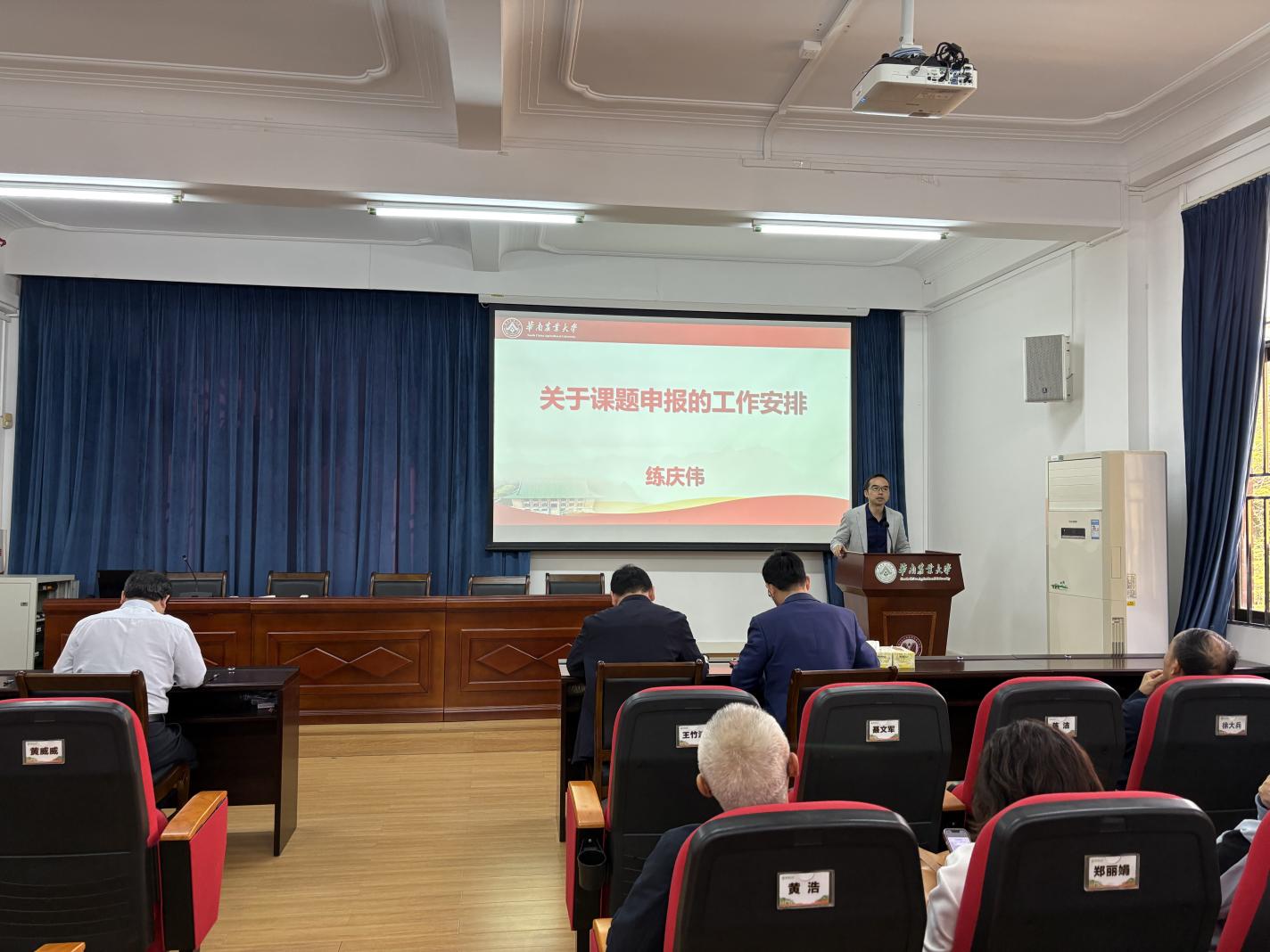会上,副院长练庆伟就课题申报工作作了安排,结合学院科研工作实际,对有关申报工作的准备要求和推进安排作了说明。