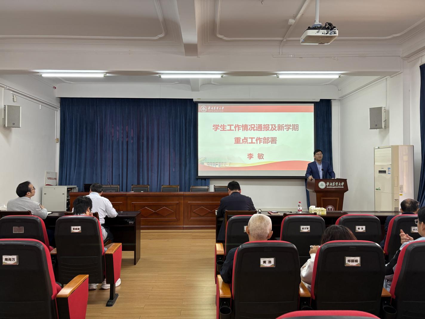 李敏副书记通报了新学期学生返校报到情况和2026年上半年学生工作安排,并围绕学生思想引导、心理健康教育、毕业生就业、协同育人和新学期安全生产等重点工作作了部署。他指出,要持续关注学生思想动态和心理状态,抓细抓实心理健康教育和就业帮扶工作。会议还就办学条件改善、管理效能提升和校外实践育人平台拓展等作了说明。