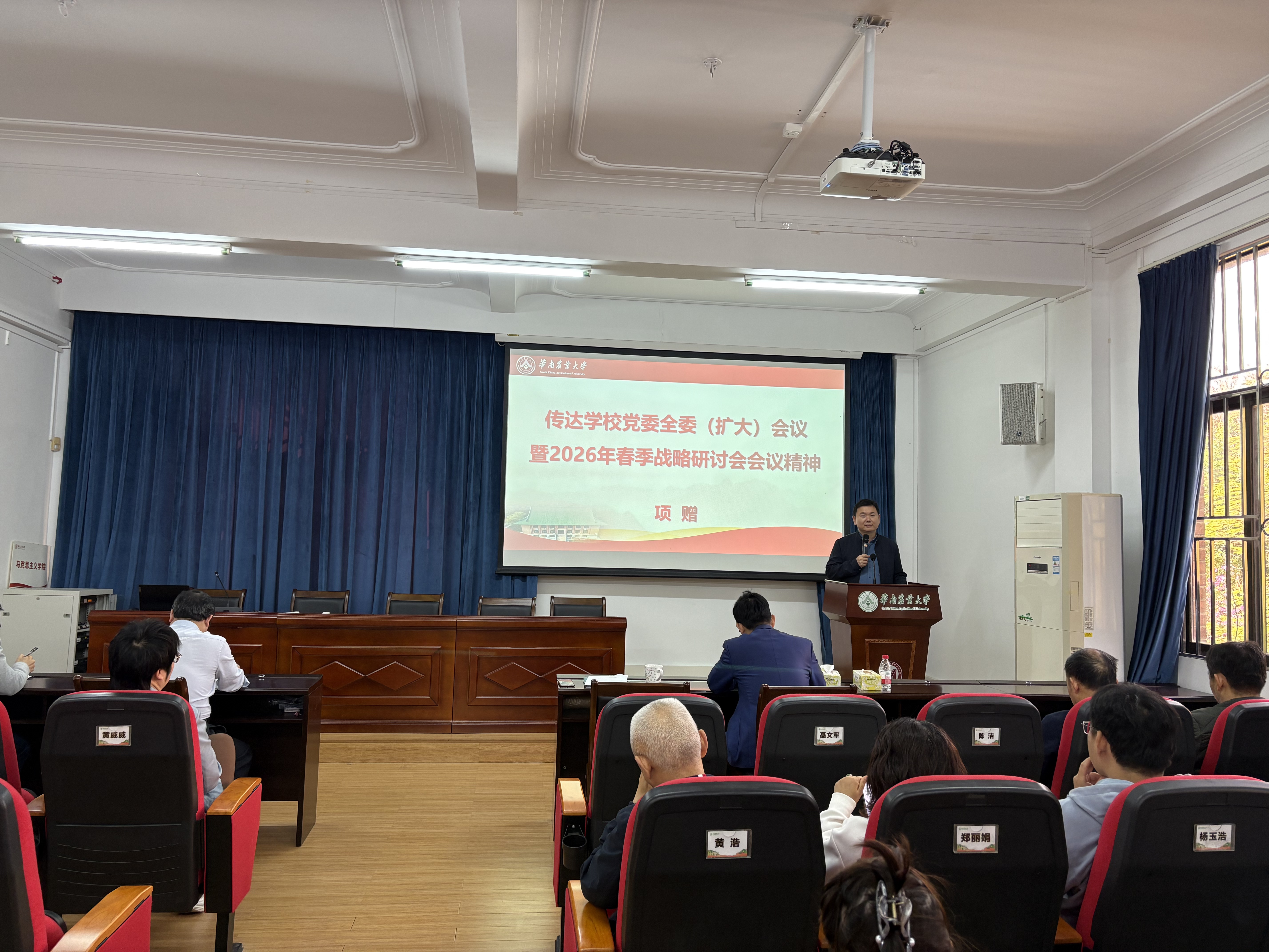 近日,马克思主义学院在206学术报告厅召开每周集中学习会,传达学校党委全委(扩大)会议暨2026年春季战略研讨会精神,部署新学期学院重点工作。会议由学院党委书记项赠主持,全院教职工参加会议。